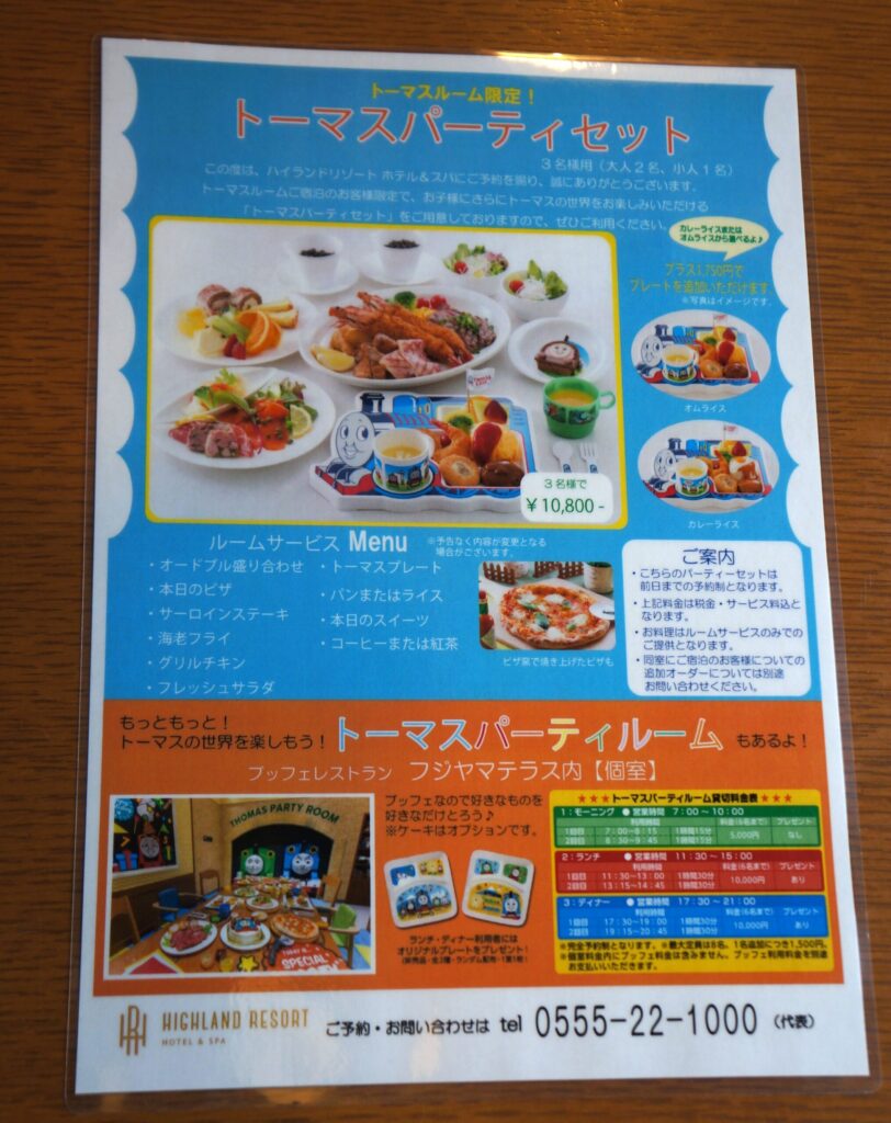 以前、富士急ハイランドのトーマスルームに宿泊した際に、ルームサービスの『トーマスパーティセット』を注文しました。その時のことをお知らせするね!