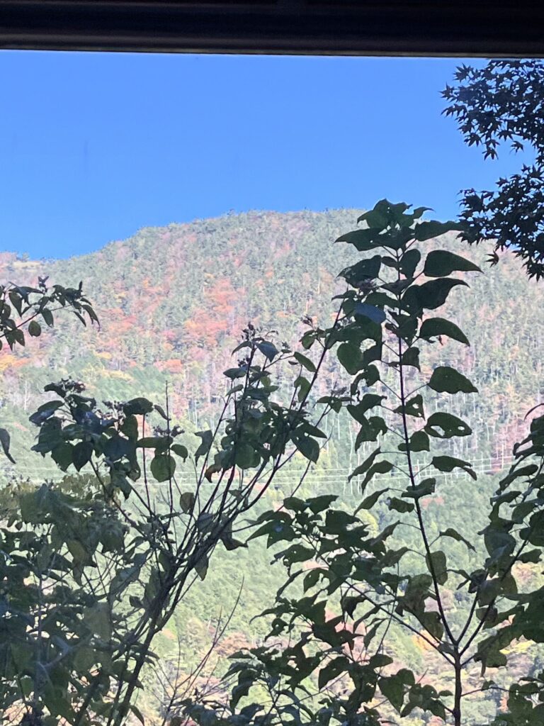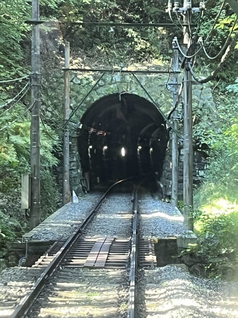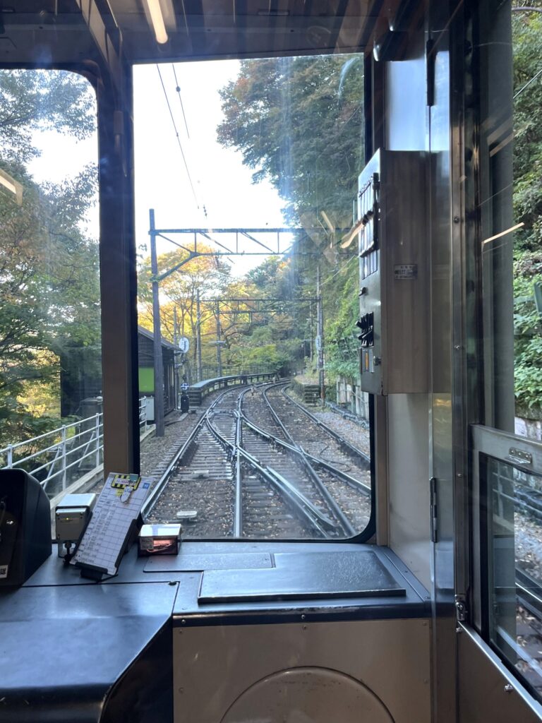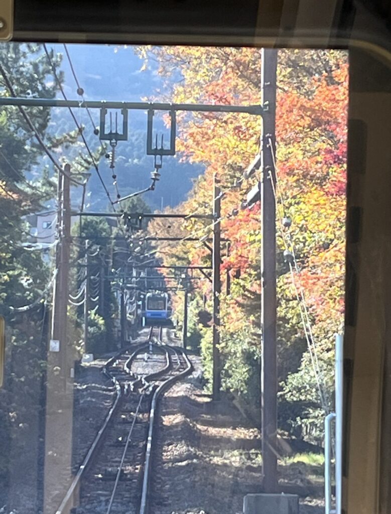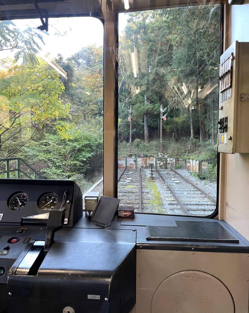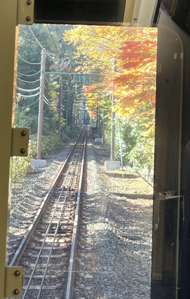電車に乗って、山を登っていきます。
