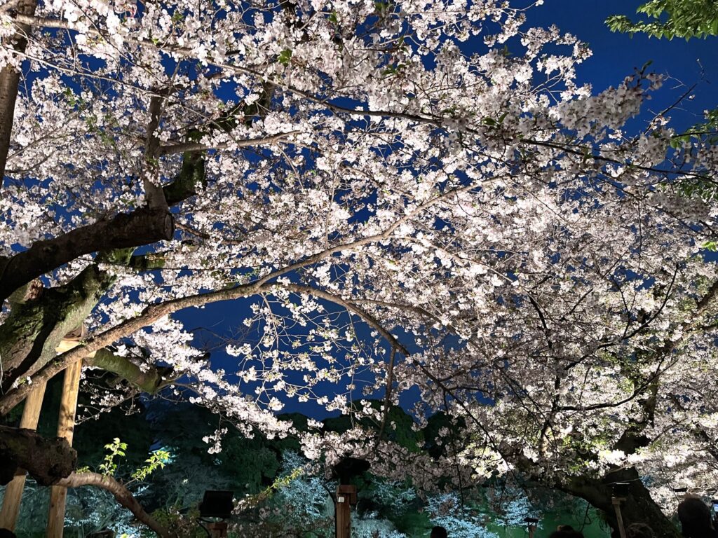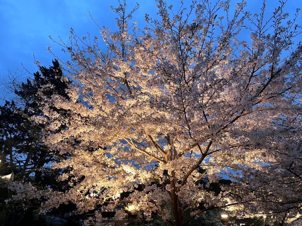 夜が濃くなるほど、桜の美しさが際立ちます。